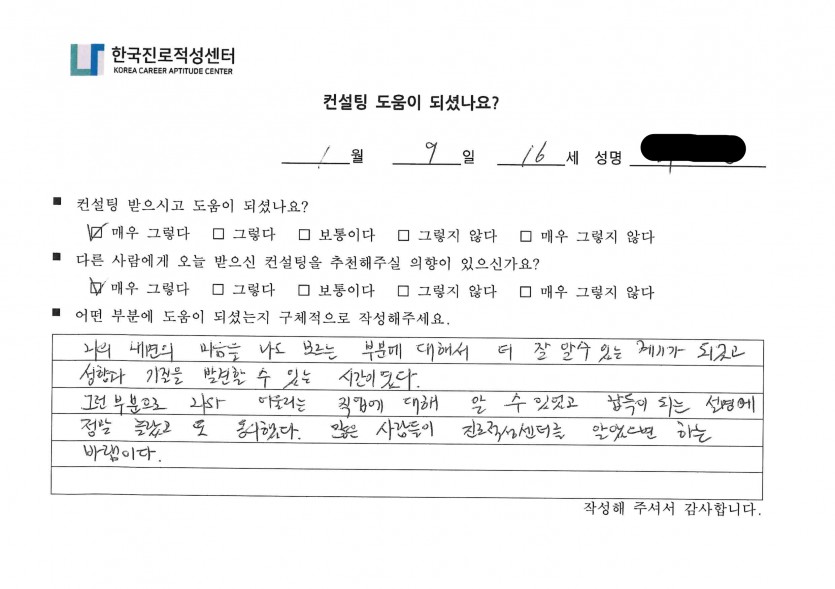 청소년컨설팅 중3 최OO님 진로적성컨설팅