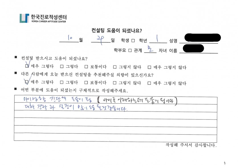 '나'에 대한 깊은 이해와 적합한 진로까지 구체적으로 도움을 드리게 되어 감사한 시간이었습니다.